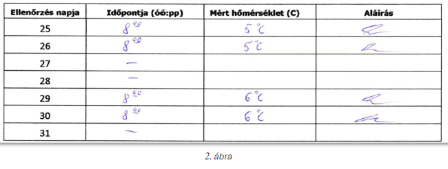 (13) A „Hőmérséklet ellenőrzési napló” a hideg vagy hűvös helyen, szobahőmérsékleten,