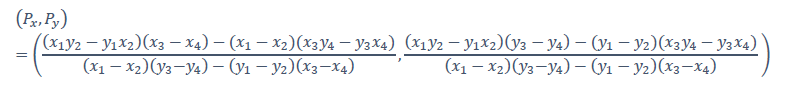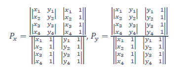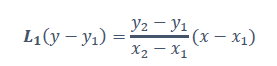 Az első két pontból felírjuk a rajtuk áthaladó egyenes egyenletét 𝐿1, a harmadik és a negyedik pontból pedig az 𝐿2-t.
