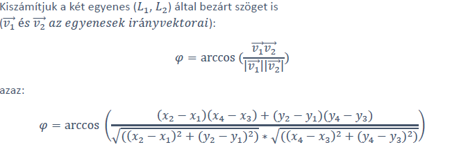 Fenti egyenlet a két egyenes hajlásszögét adja meg.