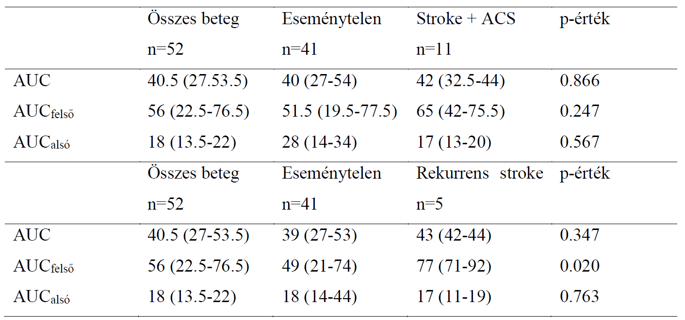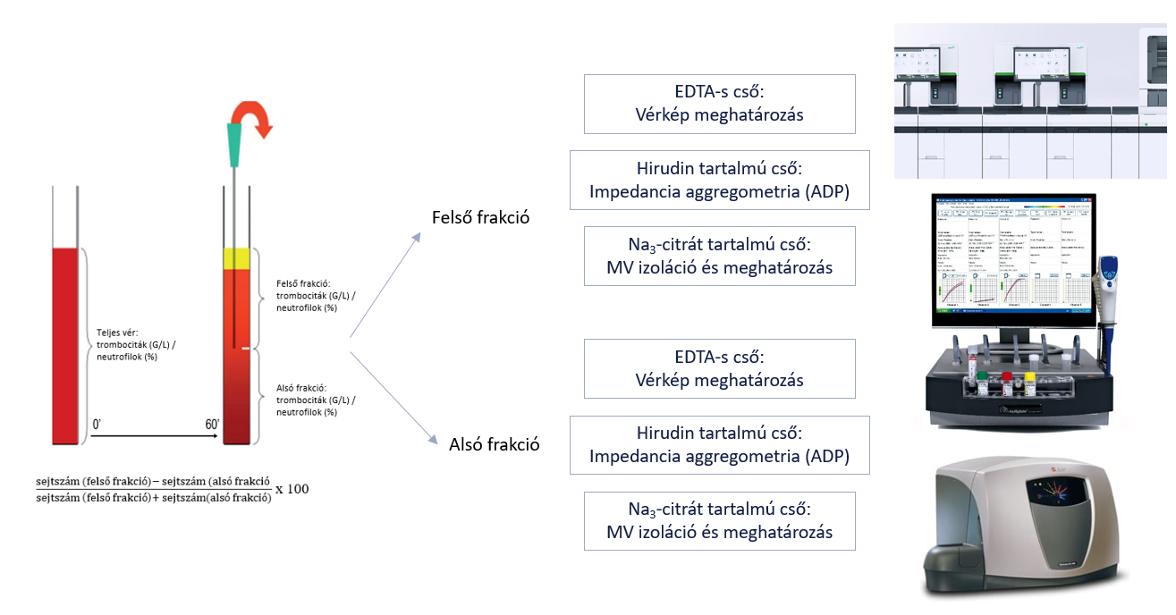 A trombocita antiszedimentációs ráta (TAR, mely egy saját fejlesztés) predikciós erejét, az irodalomban jelenleg kutatás tárgyát képező egyéb markerekkel is összehasonlítottuk: (i) a keringésben mérhető vérlemezke eredetű mikropartikulumok (PMP) számának meghatározásával; (ii) a vérlemezke eredetű keringő miRNS (miR-126-3p illetve miR-223-3p). A klinikai gyakorlatban a TAG terápia ex vivo effektivitásának (responder vs. non-responder) mérése, az elektromos impendanciaváltozás elve alapján működő aggregometria (Multiplate™, Roche) segítségével történik, mely az ára miatt kevés centrumban érhető el. Fejlesztésünk célja, hogy a TAR gyakorlati információs értékét teszteljük önmagában és egyéb gépi vérlemezke paraméterekkel (pl. high-immature platelet fraction, H-IPF, PMP illetve miRNS) kombinálva a fokozott trombotikus kockázattal élő post-stroke betegek elkülönítése szempontjából. Újszerű megközelítésünk segíthet a kevés helyen elérhető Multiplate vizsgálat kiváltásában és a személyre szabott TAG terápia (helyes dózis és optimális hatóanyag) kidolgozásában, mely effektívebb stroke prevenciót és egyúttal jobb életminőséget biztosíthat.
