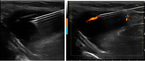 B-mód UH vezérelt folyadékaspiráció, Power Doppler módú felvétel.