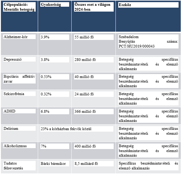 Mentális betegségek (nem neurokognitív zavarok) felismerése, nyomonkövetése és terápiájuk hatékonyságának megítélése mesterséges intelligencia alapú beszédelemzéssel - a Speech-Gap Teszt új betegségspecifikus változatainak fejlesztése és kutatása.