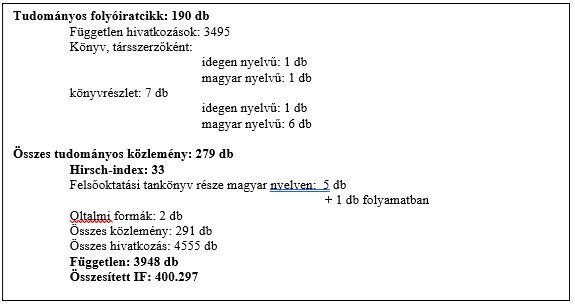Az utóbbi 15 évben a demencia nyelvi munkacsoport munkásságát 27 db tudományos közlemény és számos hazai és külföldi tudományos és népszerűsítő előadás bizonyítja. Az általam vezetett Speech-Gap munkacsoport tudományos eredményeit az Alzheimer típusú demenciák nyelvi sajátosságainak korai felismerése vonatkozásában az alábbi nemzetközi és hazai szabadalmi oltalmak védik:
